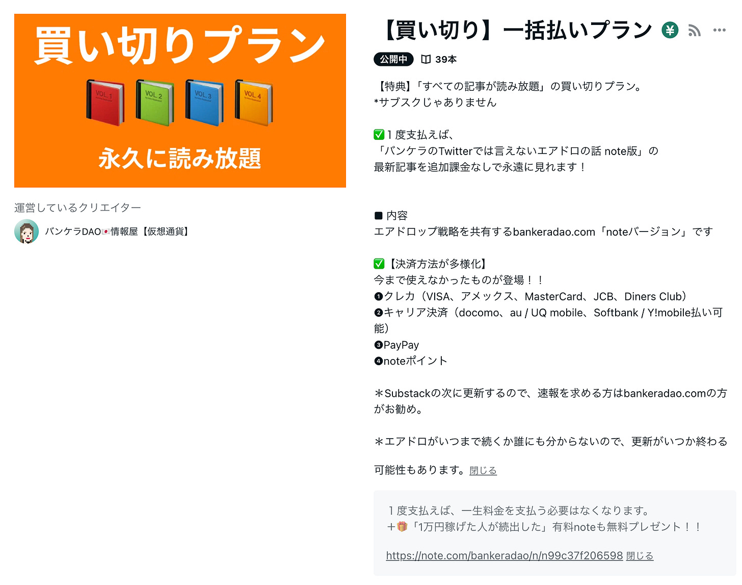 ✅アーリープラン枠を確保するhttps://note.com/bankeradao/membership