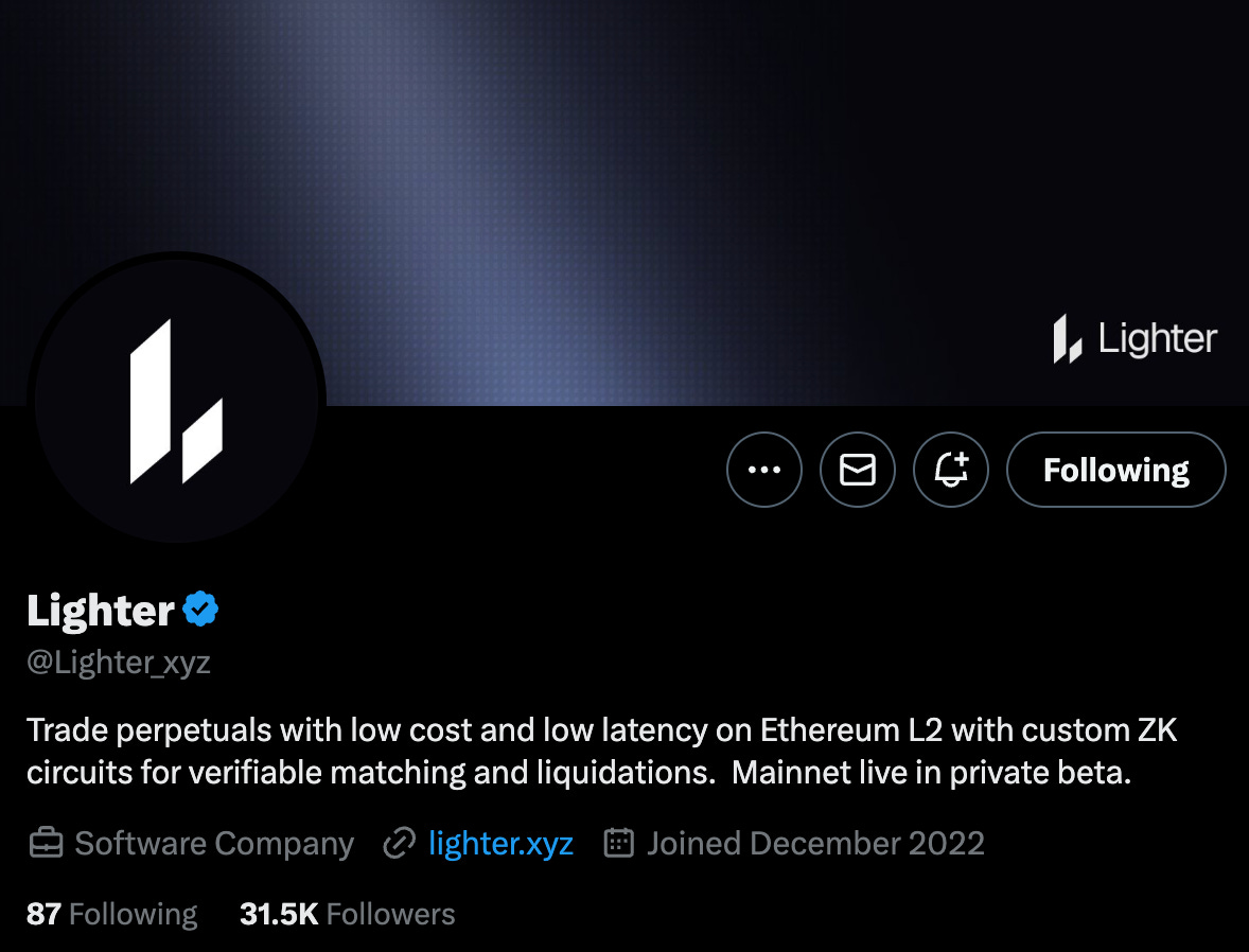 Lighterは、レイヤー2上に構築された仮想通貨のPerpsDEX