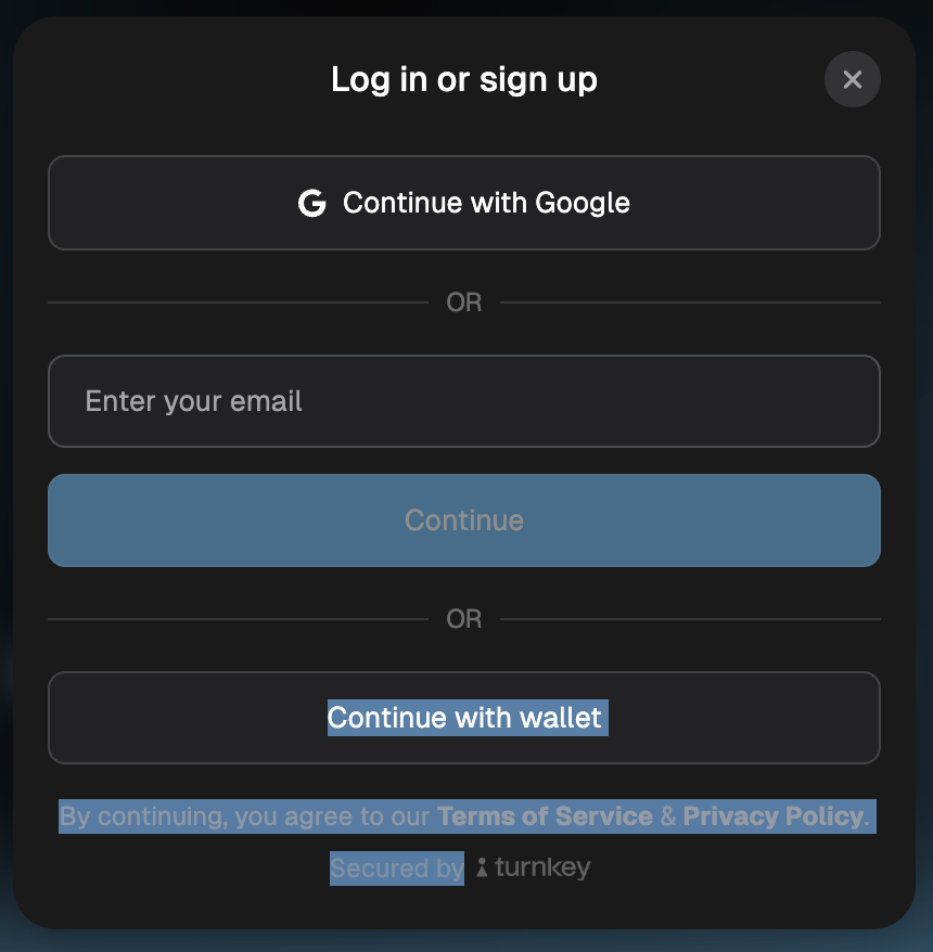 Continue with wallet=ウォレットで作成